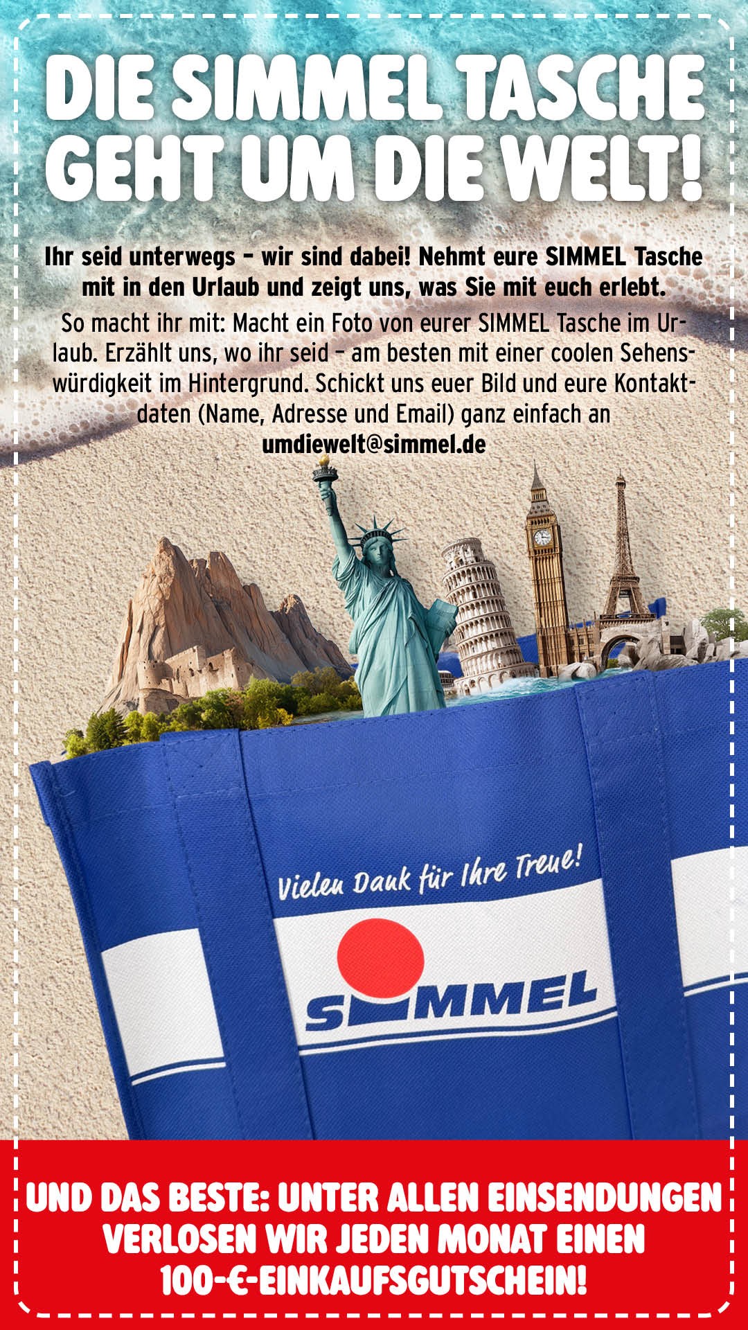 Teilnahmebedingungen des Gewinnspiels "Die Simmel Tasche geht um die Welt"